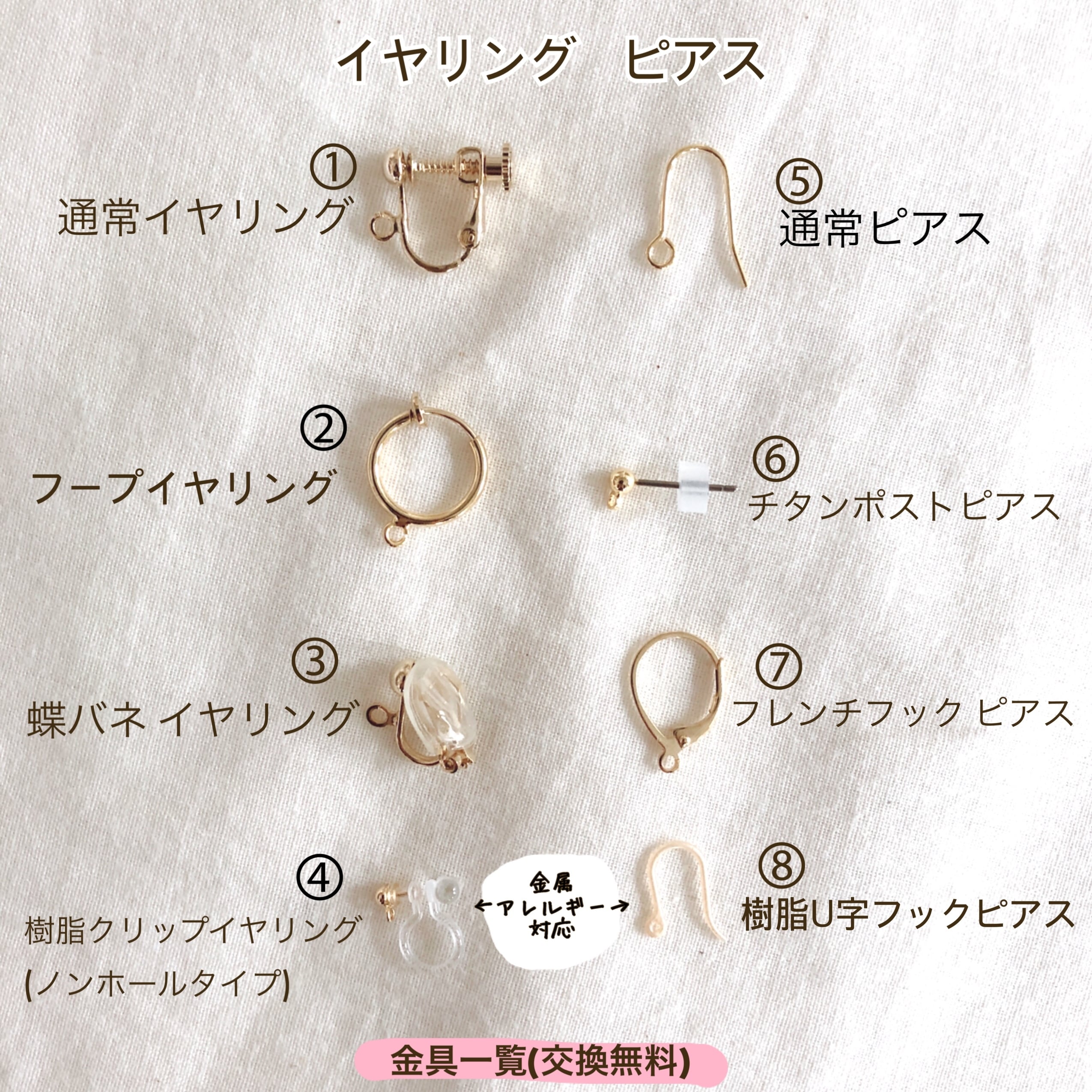 アレルギーの無い方には①②③のイヤリングがオススメです。
